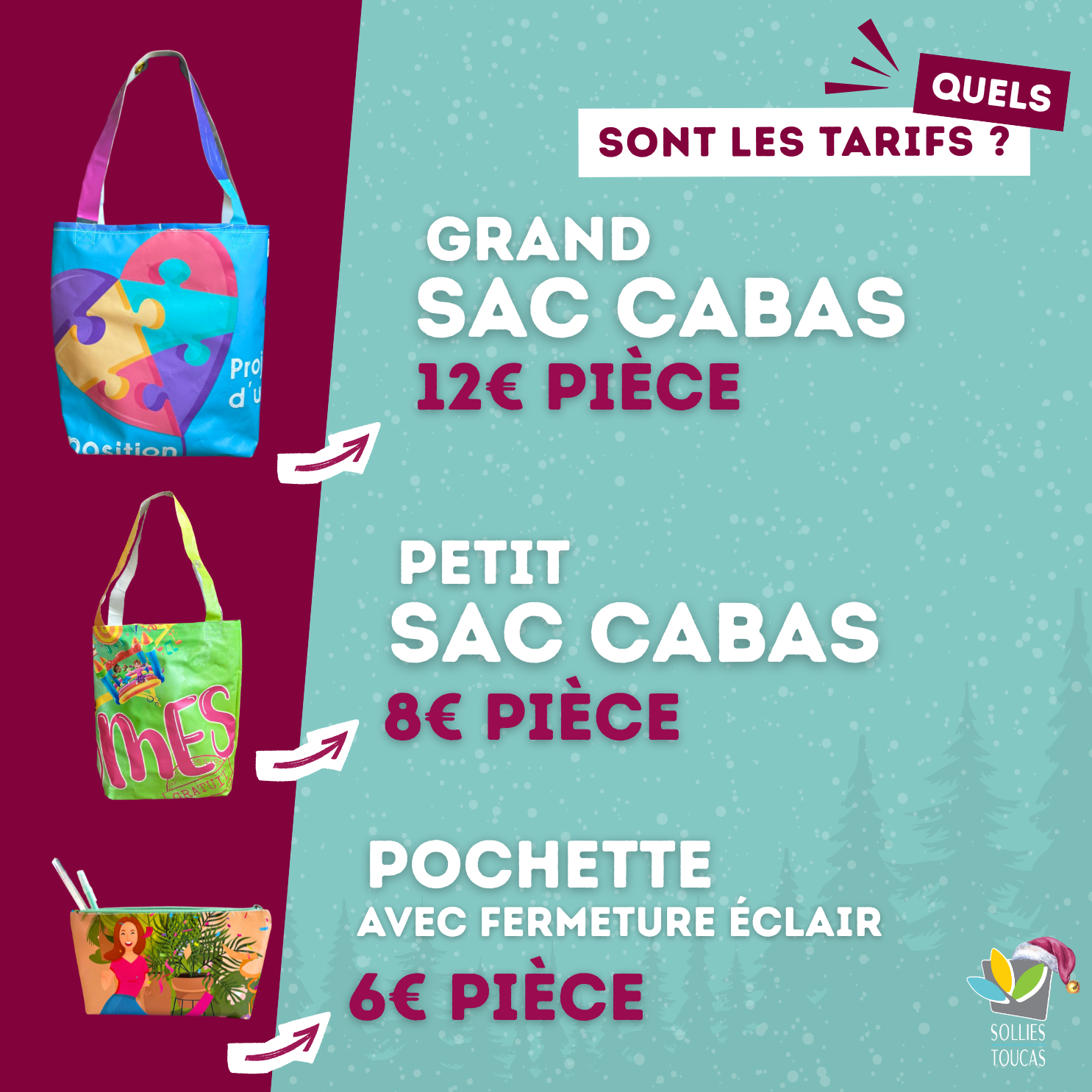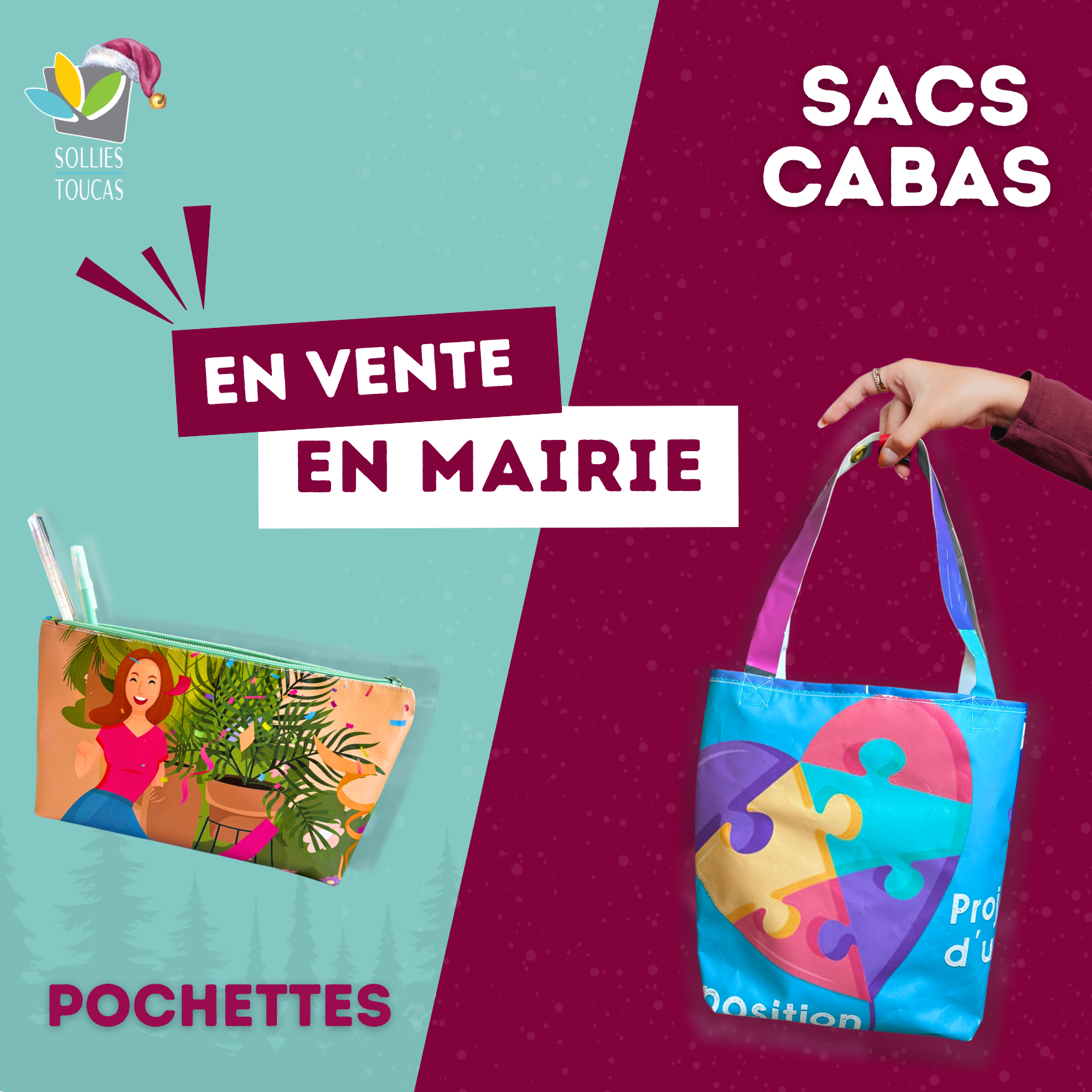 Après la distribution d’une vingtaine de sacs lors de la cérémonie des nouveaux habitants, ces créations seront à nouveau proposées à la vente en Mairie à partir du vendredi 19 décembre 2025 (aux horaires habituels d'ouverture).