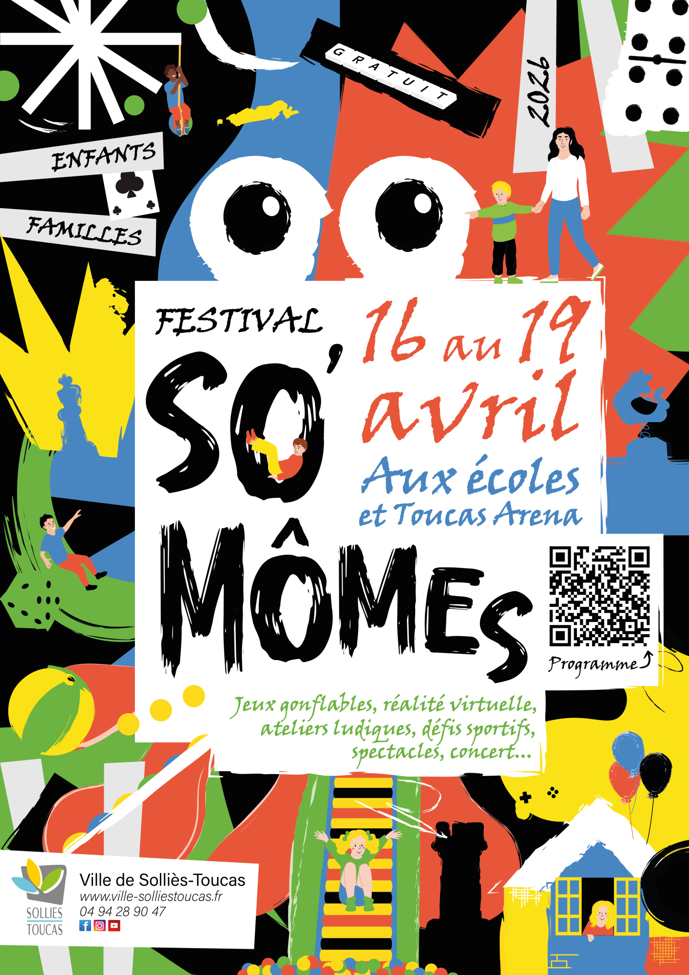 Structures gonflables géantes, réalité virtuelle, escape game, défis sportifs, jeux en bois, ateliers créatifs, coin lecture, animations immersives… et même un grand concert ! Voilà ce qui vous attend pour So’Mômes 2026 !