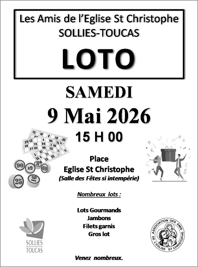 Les Amis de l’Église Saint-Christophe vous proposent un loto le samedi 9 mai 2026 à 15h, sur la place de l’Église Saint-Christophe.
